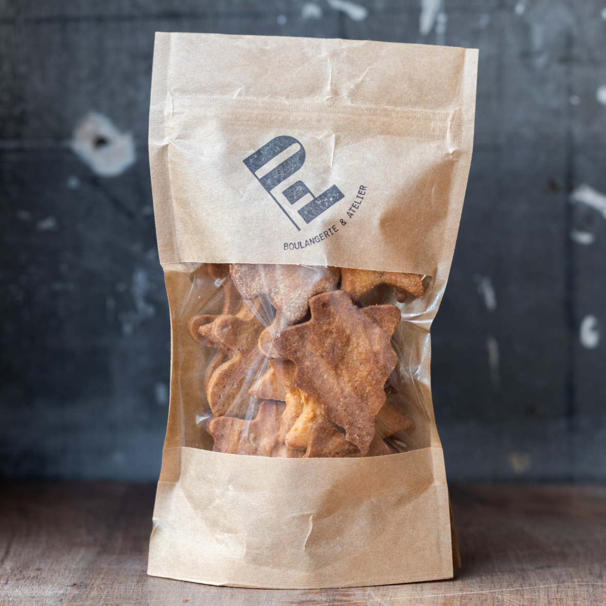 Hoche : Biscuit spritz, bonhomme spéculoos, granola gianduja.